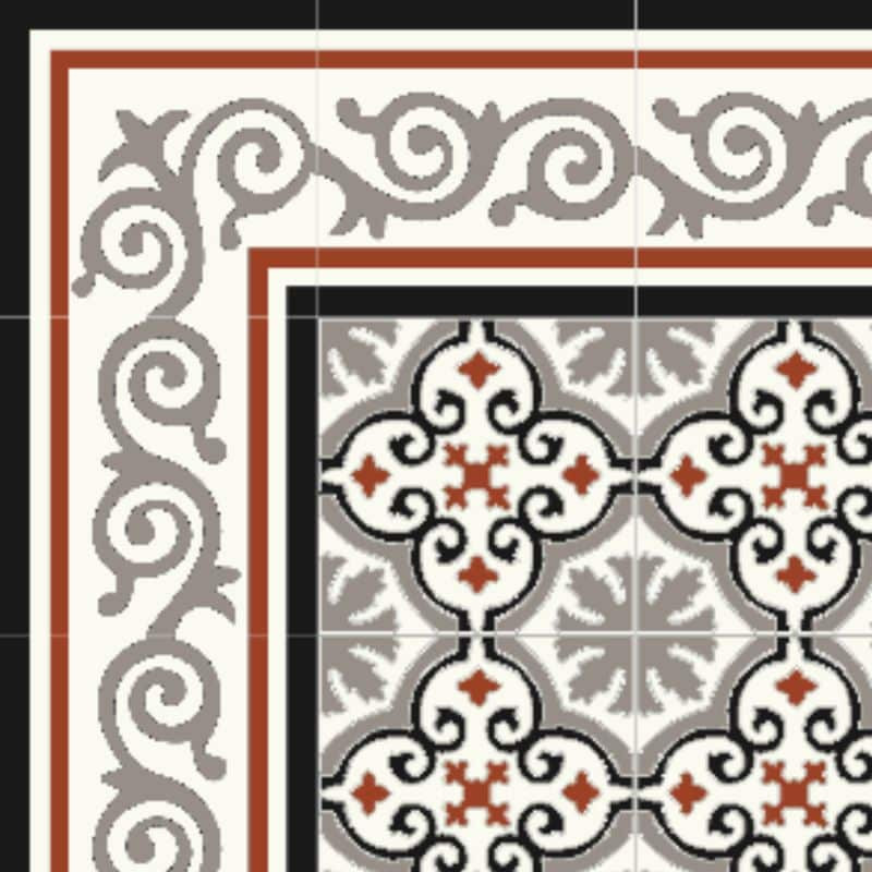 Pour compléter la frise rouge et noir, rien de mieux que l'Angle de frise carreaux de ciment rouge et noir !