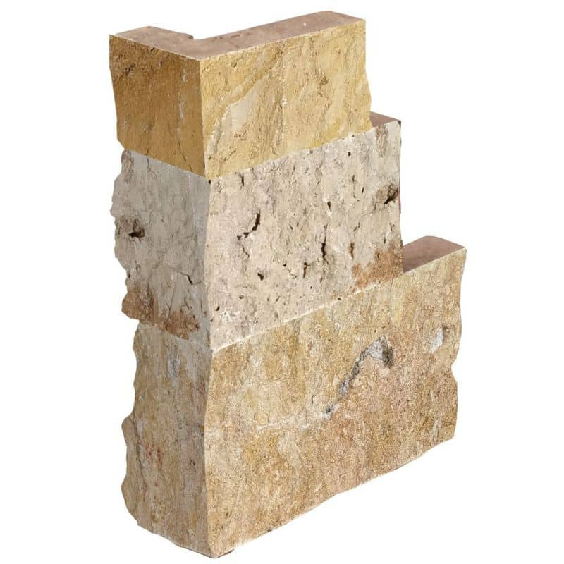 Complétez parfaitement vos murs avec l'élégance naturelle de l'angle de parement travertin Cresta, face éclatée.