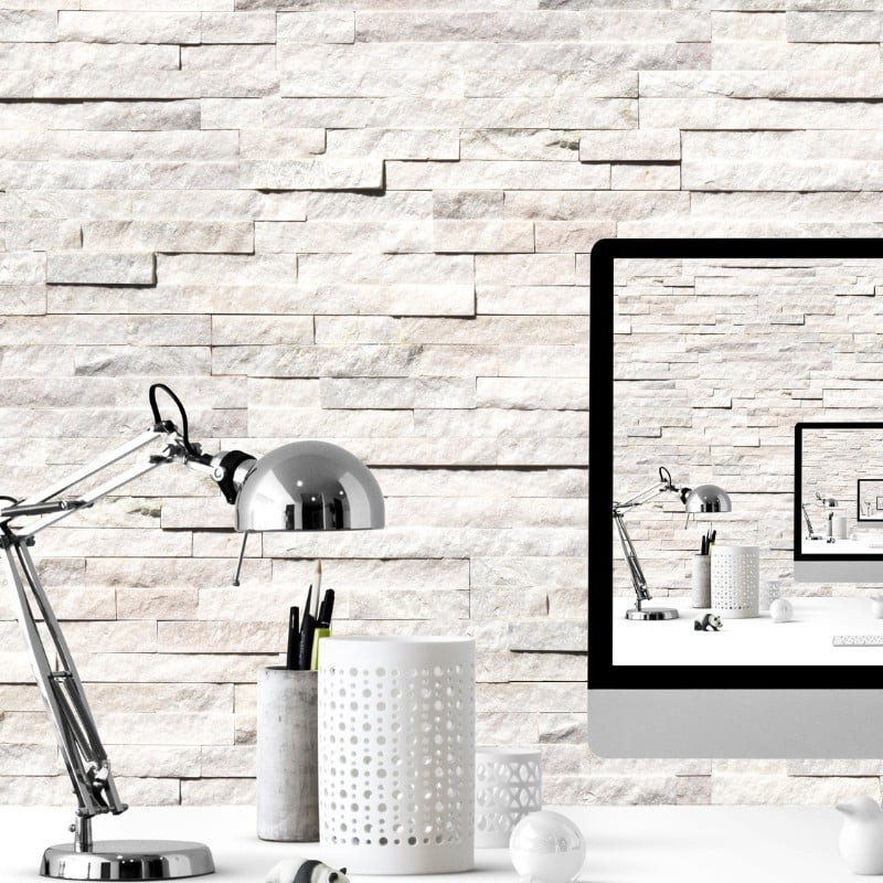 Sophistiquez les coins de vos murs avec l’angle en pierre de parement en quartz blanc.