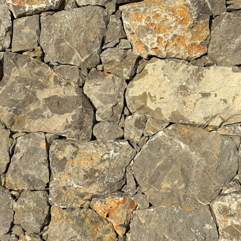 Disponible en épaisseur de 3 à 4 cm, découvrez l’angle pour pierre de parement naturelle Verdon aux nuances grises et touches d’ocre.