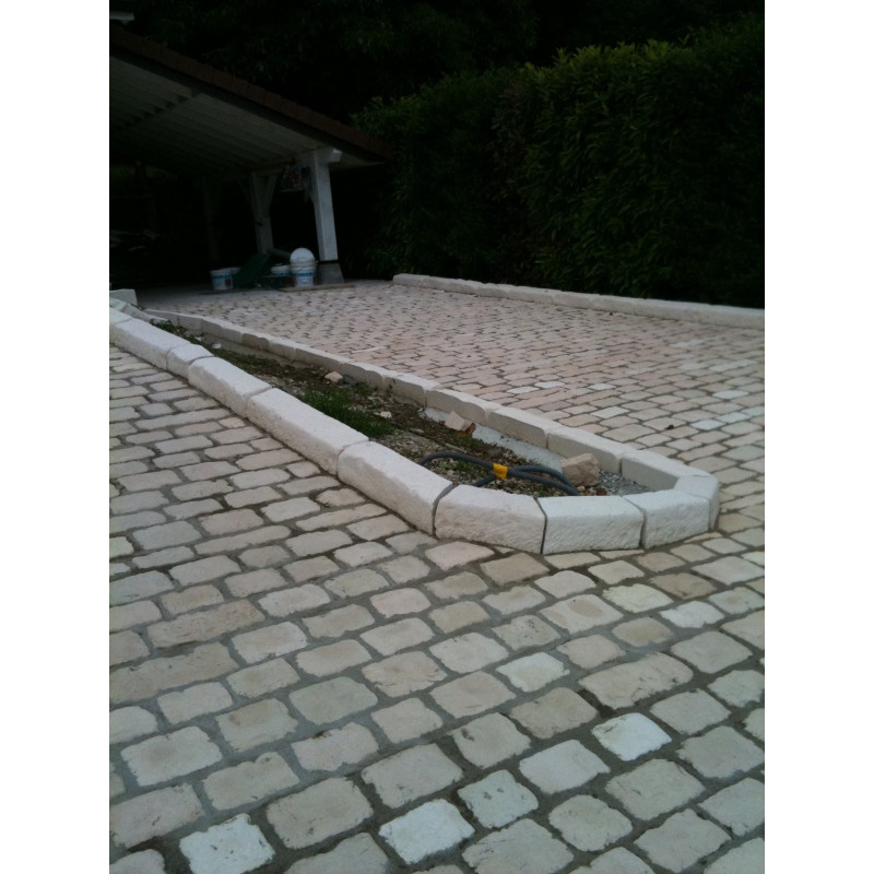 La bordure Chantilly bouchardée est une bordure d’extérieur particulièrement adaptée pour délimiter la séparation entre deux espaces dans votre jardin, généralement un espace végétalisé et un espace pavé avec notre Pavé Chantilly.