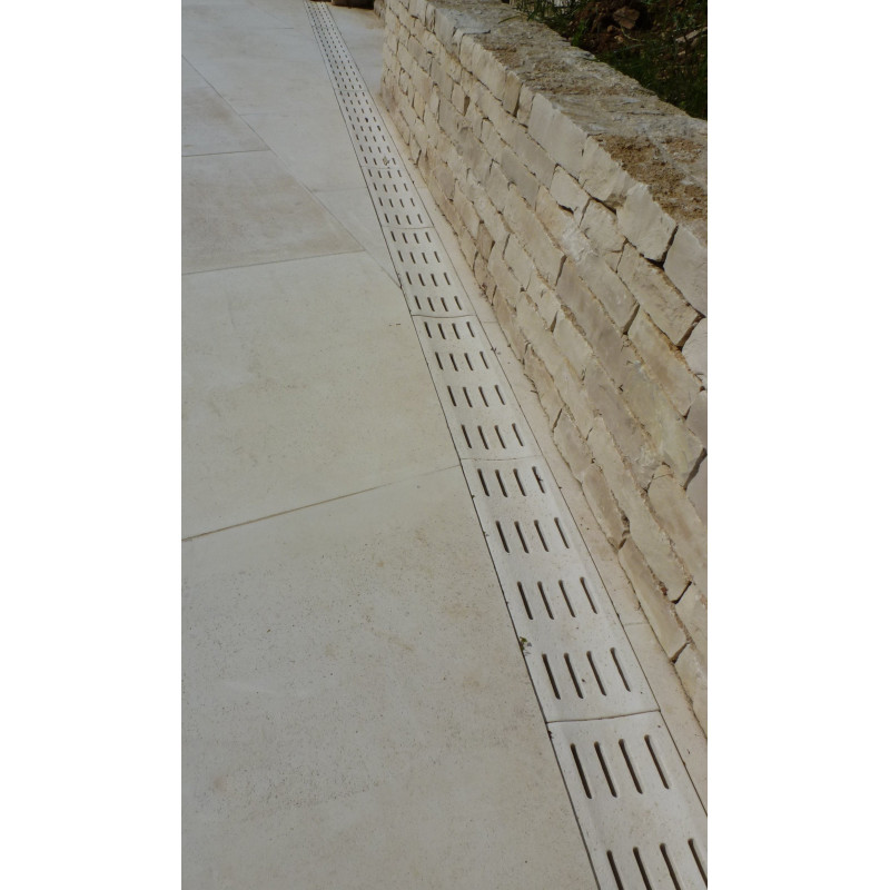 Que ce soit dans l’entourage d’une terrasse, au bord d’une piscine, ou tout simplement le long d’une allée, ce caniveau percé saura se fondre dans votre déco extérieur. Fabriqué selon un savoir-faire unique et artisanal, ce caniveau en pierre possède un aspect ancien. Celui-ci est moulé en pierre reconstituée patinée à base de granulat de pierre naturel.