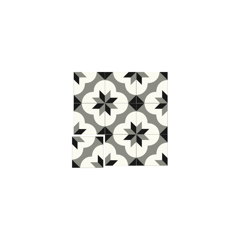 Ces carreaux de ciment sont issus d’une fabrication française grâce à un savoir-faire artisanale. Ils ont pour atouts d’être faciles à poser et nécessitent un faible entretien. Il faudra cependant leur ajouter une fine couche d’imperméabilisant pour les protéger. Vous pourrez placer ce carreau de ciment Alpha n'importe où au gré de vos envies grâce à sa polyvalence et sa facilité de pose. Ces carreaux de ciment peuvent être exposés sur un sol ou mur. La sobriété des couleurs de ce carreau vous permettront de réaliser facilement un carrelage en crédence. Dans une pièce à vivre, à l’extérieur ou utilisé comme habillage mural, le carreau de ciment n’a pour limite que votre imagination ! À ce sujet, si vous souhaitez une composition spécifique selon vos goûts, n’hésitez pas à nous contacter ! À noter : L’épaisseur de ces carreaux de ciment ne permet pas de recouvrir l’intégralité d’un mur sur la hauteur. Néanmoins, il faudra protéger vos carreaux du grand froid si vous souhaitez les poser en extérieur. Ces derniers ne sont pas résistants au gel. Un jointage épais est obligatoire ! Composé de ciment, sable, poudre de marbre et de pigment, tous nos carreaux de ciment sont issus du mélange, moulage, pressage et séchage de l’ensemble de ces composants. Nous pouvons réaliser des carreaux de ciment sur mesure tant en termes de dessin, de dimensions que de couleurs. Par exemple, ce motif peut être réalisé avec d’autres couleurs de votre choix. Ne pas hésiter à nous contacter pour un devis ou plus d'informations. Nous vous invitons également à découvrir nos carreaux de ciment étoile, nos carreaux de ciment gris et bleu ainsi que nos carreaux de ciment vert d'eau. Les motifs géométriques de ce carreau vous permettent de créer facilement un carrelage en crédence. Habituellement, ce produit est conditionné par paquets, qui peuvent être posés sur une palette en fonction du volume d’achat. La livraison se fait en camion à domicile ou sur votre chantier.Dimension du carreau de ciment Alpha