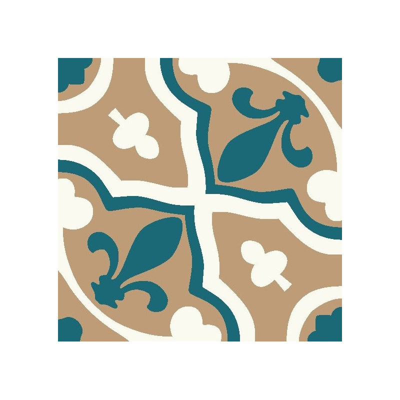 Découvrez cette magnifique et fidèle réédition de carreau de ciment. Ce produit est un élément de décoration étonnant, original et coloré. Il apportera une touche de gaieté à votre intérieur et le rendra plus vivant. Du milieu du XIXᵉ siècle (son invention) à la deuxième moitié de XXᵉ siècle, les carreaux de ciment étaient très populaires. Ils offrent une alternative aux sols en pierre naturelle et sont très faciles à entretenir. Pourtant, ils ont été considérés comme démodés pendant de nombreuses années. De nos jours, on assiste à un retour en force de ces produits. Ses motifs « néo-gothique » séduisent de nouveau, que ce soit pour les projets anciens ou contemporains. Il ne s'agit pas d'un carrelage sur lequel a été ajouté un décor effet "carreau de ciment". Il s'agit d'un produit véritablement authentique constitué de ciment brut décoré avec des motifs à base de ciment pigmenté. Ces carreaux de ciment sont issus d'une fabrication française et d'un savoir-faire unique et authentique, vieux de 150 ans. Dans une pièce à vivre, à l’extérieur ou utilisé comme habillage mural, ces carreaux de ciment beige et bleu n’ont pour limite que votre imagination ! À ce sujet, si vous souhaitez une composition spécifique selon vos goûts, n’hésitez pas à nous contacter ! Nous vous invitons également à découvrir nos carreaux de ciment vintage, nos carreaux de ciment pastel et nos carreaux de ciment bleu canard. Néanmoins, il faudra protéger vos carreaux du grand froid si vous souhaitez les poser en extérieur. Ces derniers ne sont pas résistants au gel. Un jointage épais est obligatoire ! À noter : L’épaisseur de ces carreaux de ciment ne permet pas de recouvrir l’intégralité d’un mur sur la hauteur. Composé de ciment, sable, poudre de marbre et de pigment, tous nos carreaux de ciment sont issus du mélange, moulage, pressage et séchage de l’ensemble de ces composants. Nous pouvons réaliser des carreaux de ciment sur mesure tant en termes de dessin, de dimensions que de couleurs. Par exemple, ce motif en beige et bleu peut être réalisé avec d’autres couleurs de votre choix. N'hésitez pas à nous contacter pour un devis ou plus d'informations. Les motifs géométriques de ce carreau vous permettent de créer facilement un carrelage en crédence. Habituellement, ce produit est conditionné par paquets, qui peuvent être posés sur une palette en fonction du volume d’achat. La livraison se fait en camion à domicile ou sur votre chantier.Dimension de ce carreau de ciment beige et bleu