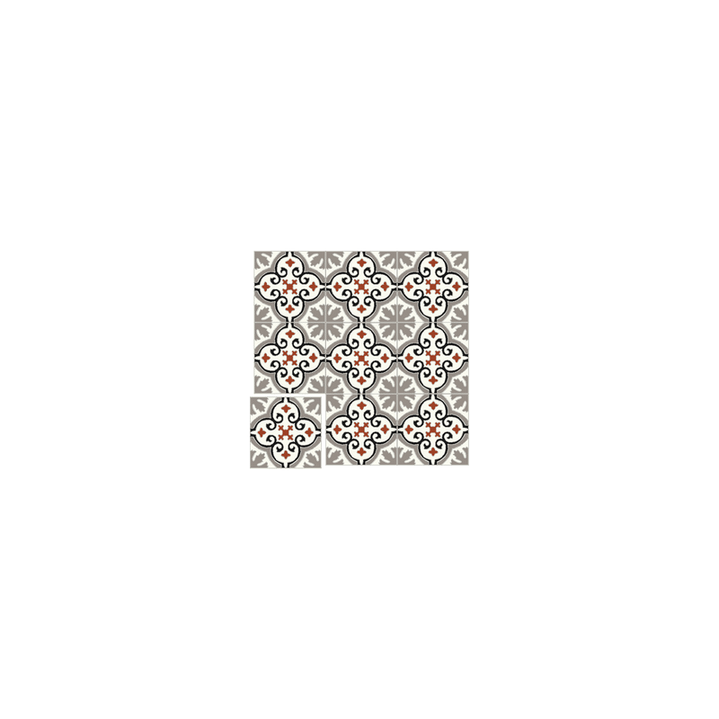 Ces carreaux de ciments artisanaux sont fabriqués en France grâce à un savoir-faire traditionnel. Facile à poser, résistants et adaptés à tous les supports de pose, comment résister face à toutes leurs qualités ? Installez ces carreaux de ciment rouge et gris sur un sol ou un mur et ajoutez une touche d'originalité et d'authenticité à votre décoration. Les couleurs de ce carreau sont grises, noires et rouges formant une frise géométrique qui habilleront facilement une maison au style classique ou moderne. Aujourd'hui, les carreaux de ciment trouvent à nouveaux leur place dans les décorations les plus en vogue. Dans une pièce à vivre, à l’extérieur ou utilisé comme habillage mural, le carreau de ciment rouge et gris Luna n’a pour limite que votre imagination ! À ce sujet, si vous souhaitez une composition spécifique selon vos goûts, n’hésitez pas à nous contacter ! Néanmoins, il faudra protéger vos carreaux du grand froid si vous souhaitez les poser en extérieur. Ces derniers ne sont pas résistants au gel. Un jointage épais est obligatoire ! Composé de ciment, sable, poudre de marbre et de pigment, tous nos carreaux de ciment sont issus du mélange, moulage, pressage et séchage de l’ensemble de ces composants. Découvrez aussi nos carreaux de ciment moderne, nos carreaux de ciment étoile, nos carreaux vert de gris ainsi que nos carreaux de ciment arabesque. Nous pouvons réaliser des carreaux de ciment sur mesure tant en termes de dessin, de dimensions que de couleurs. Par exemple, ce motif peut être réalisé avec d’autres couleurs de votre choix. Ne pas hésiter à nous contacter pour un devis ou plus d'informations. Les motifs géométriques de ce carreau vous permettent de créer facilement un carrelage en crédence. À noter : L’épaisseur de ces carreaux de ciment ne permet pas de recouvrir l’intégralité d’un mur sur la hauteur. Habituellement, ce produit est conditionné par paquets, qui peuvent être posés sur une palette en fonction du volume d’achat. La livraison se fait en camion à domicile ou sur votre chantier. Découvrez également notre gamme de carreaux de ciment gris !Dimension du carreau de ciment rouge et gris Luna