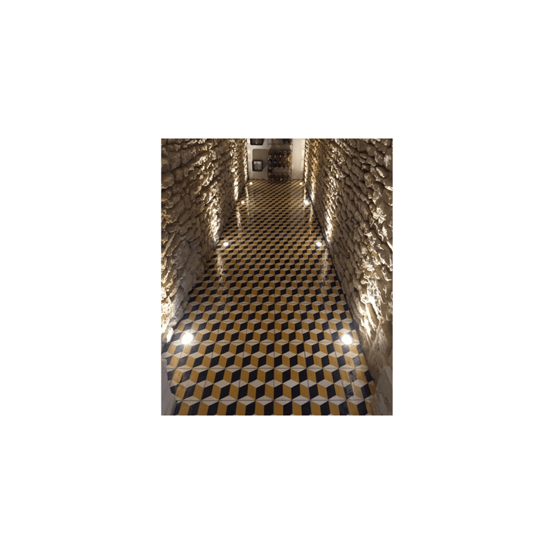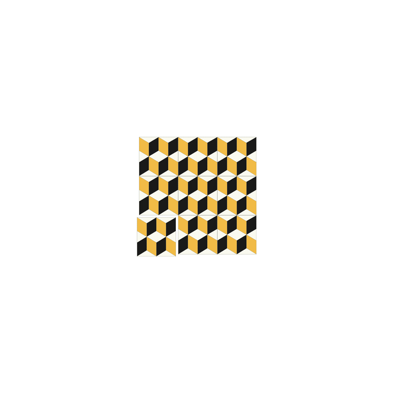 Grâce à son motif géométrique en cube, ce revêtement peut tout à fait décorer un intérieur pour un effet trompe-l'œil. Installez-le où bon vous semble : dans une salle de bain, un salon ou même une cuisine ! L'avantage des carreaux de ciment est que ceux-ci peuvent convenir pour un mur ou un sol ! Réalisés dans une manufacture spécialisée dans la création de carreaux de ciment. Nos carreaux de ciment au motif géométrique Paradoxe sont fabriqués en France grâce à un savoir-faire authentique. Dans une pièce à vivre, à l’extérieur ou utilisé comme habillage mural, le carreau de ciment n’a pour limite que votre imagination ! À ce sujet, si vous souhaitez une composition spécifique selon vos goûts, n’hésitez pas à nous contacter ! À noter : L’épaisseur de ces carreaux de ciment ne permet pas de recouvrir l’intégralité d’un mur sur la hauteur. Néanmoins, il faudra protéger vos carreaux de ciment géométriques du grand froid si vous souhaitez les poser en extérieur. Ces derniers ne sont pas résistants au gel. Un jointage épais est donc obligatoire ! Composé de ciment, sable, poudre de marbre et de pigment, tous nos carreaux de ciment sont issus du mélange, moulage, pressage et séchage de l’ensemble de ces composants. Nous pouvons réaliser des carreaux de ciment sur mesure tant en termes de dessin, de dimensions que de couleurs. Par exemple, ce motif peut être réalisé avec d’autres couleurs de votre choix. Contacter nos commerciaux pour un devis ou plus d'informations. Les motifs géométriques de ce carreau vous permettent de créer facilement un carrelage en crédence. Nous vous invitons également à découvrir d'autres carreaux de ciment au design trompe l'œil tels que nos carreaux de ciment vintage et nos carreaux de ciment moderne et au design plus rétro comme nos carreaux de ciment blanc et bleu et nos carreaux de ciment authentique. Habituellement, ce produit est conditionné par paquets, qui peuvent être posés sur une palette en fonction du volume d’achat. La livraison se fait en camion à domicile ou sur votre chantier.Dimension du carreau de ciment à motif géométrique Paradoxe