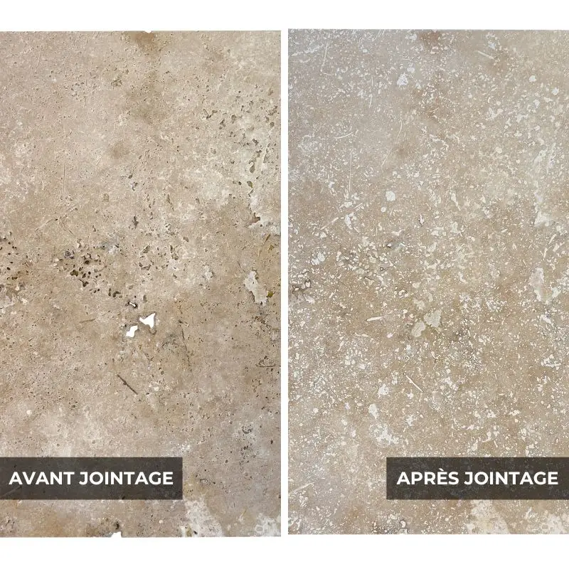 Afin de protéger efficacement le travertin contre les taches tenaces, nous vous recommandons d’appliquer un hydrofuge. En effet, ce traitement limite la pénétration des liquides et contribue à préserver durablement l’aspect de la pierre. Toutefois, appliquez-le uniquement après la pose des joints, sur une surface propre et parfaitement sèche.