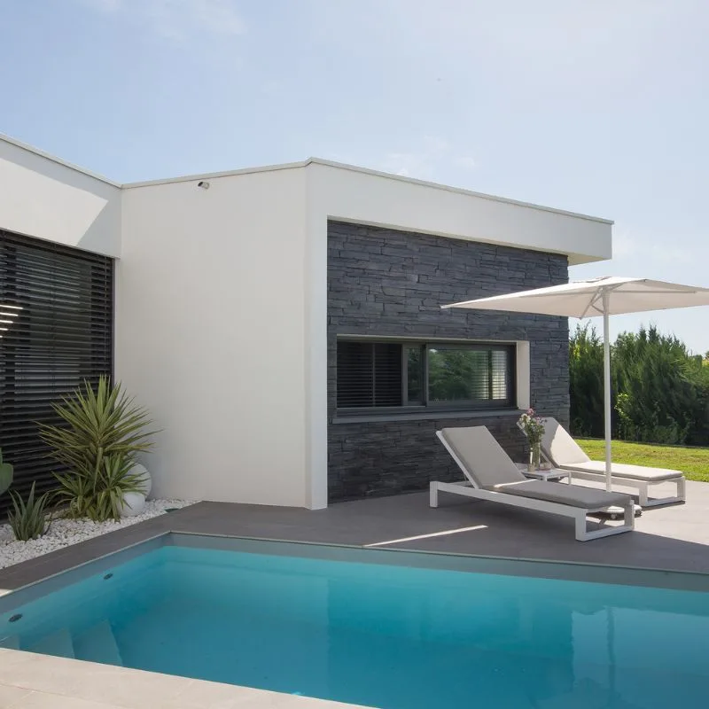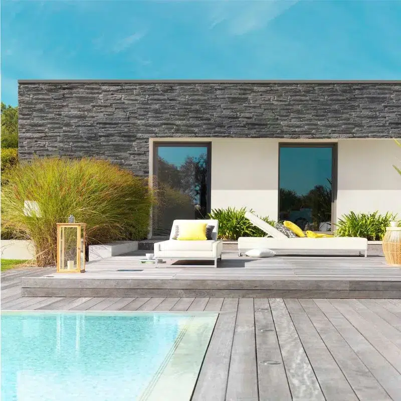 Créé à partir de pierres naturelles concassées sous forme de grains très fins puis mélangés à des liants naturels. Les constructions en pierre naturelle étant de plus en plus onéreuses, Orsol a conçu un matériau naturel reconstitué, moins onéreux et fidèle aux caractéristiques esthétiques de la pierre. Ce matériau est donc moins lourd, moins cher et aussi charmant qu'un parement de pierre naturelle ! Associez ce magnifique chainage d'angle, de fabrication française, au parement Yosemite mais n'hésitez pas à l'utiliser seul, sur un mur enduit. Son aspect schiste, aux reliefs marqués et irréguliers, avec des nuances de tons, conviendra à l’environnement de votre propriété, soyez en certain. Les avantages de ce chainage d'angle sont nombreux. Tout comme le le revêtement mural Yosemite, cet angle de parement est teinté dans la masse. Cela signifie une longue durée de vie, ce, grâce aux fibres acryliques du chainage d'angle. Bénéficiez également des avantages de la pierre reconstituée. En effet, l'atout principal de la pierre reconstituée est sa résistance accrue aux chocs ainsi qu'aux variations de température. L’authenticité du ton naturel de la gamme "Yosemite" vous offrira une variation de nuances forte mais maitrisée. Le rendu final ne pourra que vous satisfaire !Les fluctuations du grand chainage d'angle de parement Yosemite