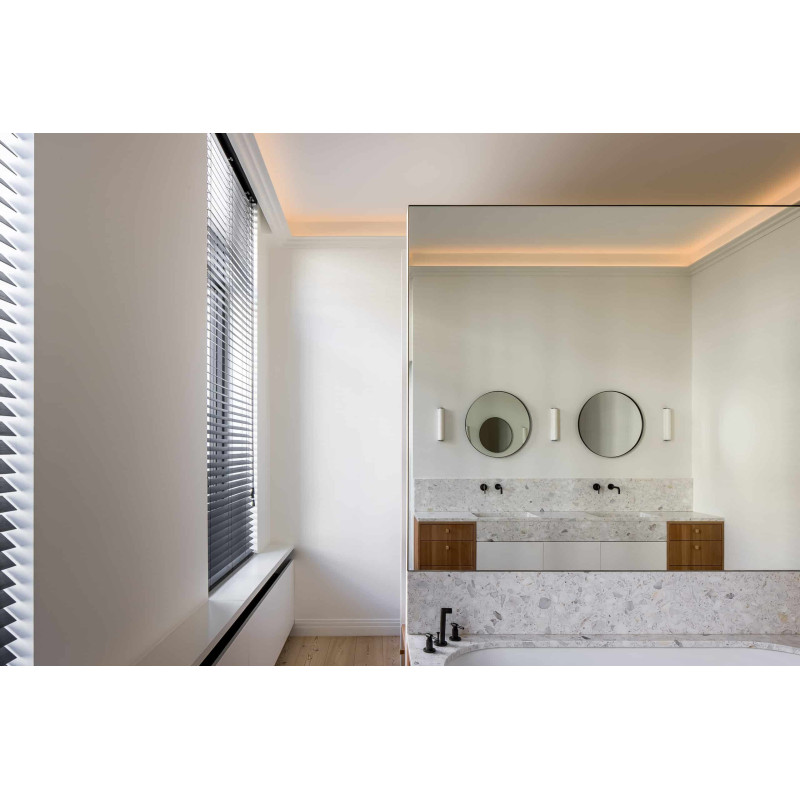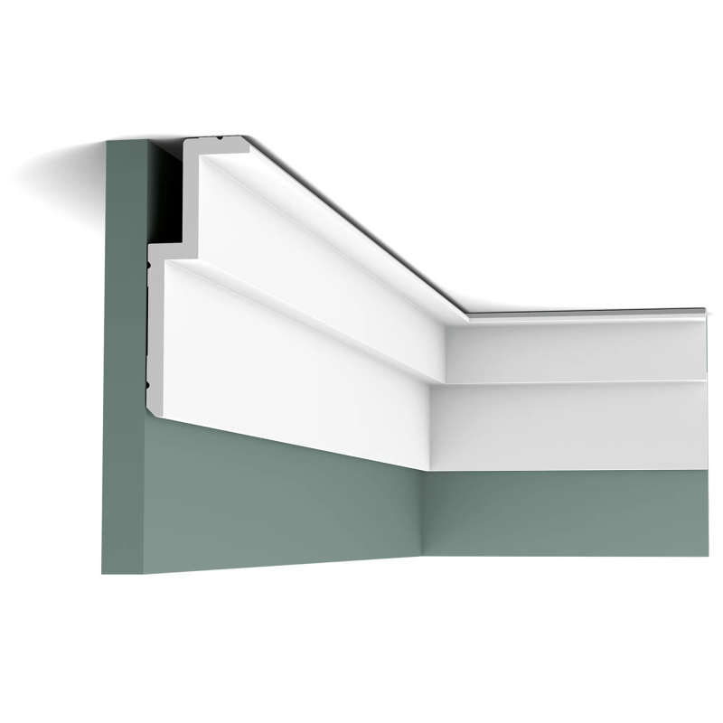 La corniche Boulogne vous offre la solution pour une rénovation facile, économique et rapide de vos plafonds ou murs. Conçue par Orio Tonini, cette corniche ajoute une touche de modernité et d’élégance aux pièces. En plaçant, le côté long au plafond, cela donne à l'espace une impression de largeur. Son angle biseauté sur le bas et le haut, fournit une ligne d'ombre subtile pour donner de la profondeur. C’est le choix parfait pour créer une harmonie entre l'architecture et la décoration de votre espace. Cette corniche est idéale pour les travaux de rénovation. En un rien de temps, celle-ci masque les imperfections du mur ou du plafond. Vous pouvez la peindre directement dans la couleur de votre choix, car celle-ci est recouverte d’un primer blanc.