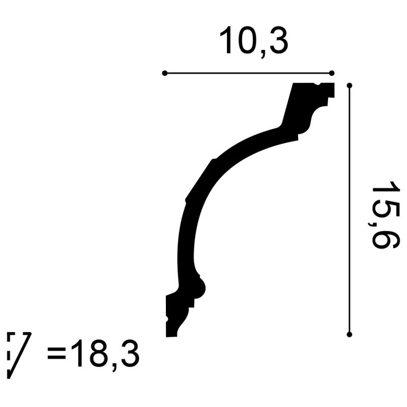 Les dimensions de la corniche Canterburry sont :- C 217 : L 200 x H 10,3 x L 15,6 cm