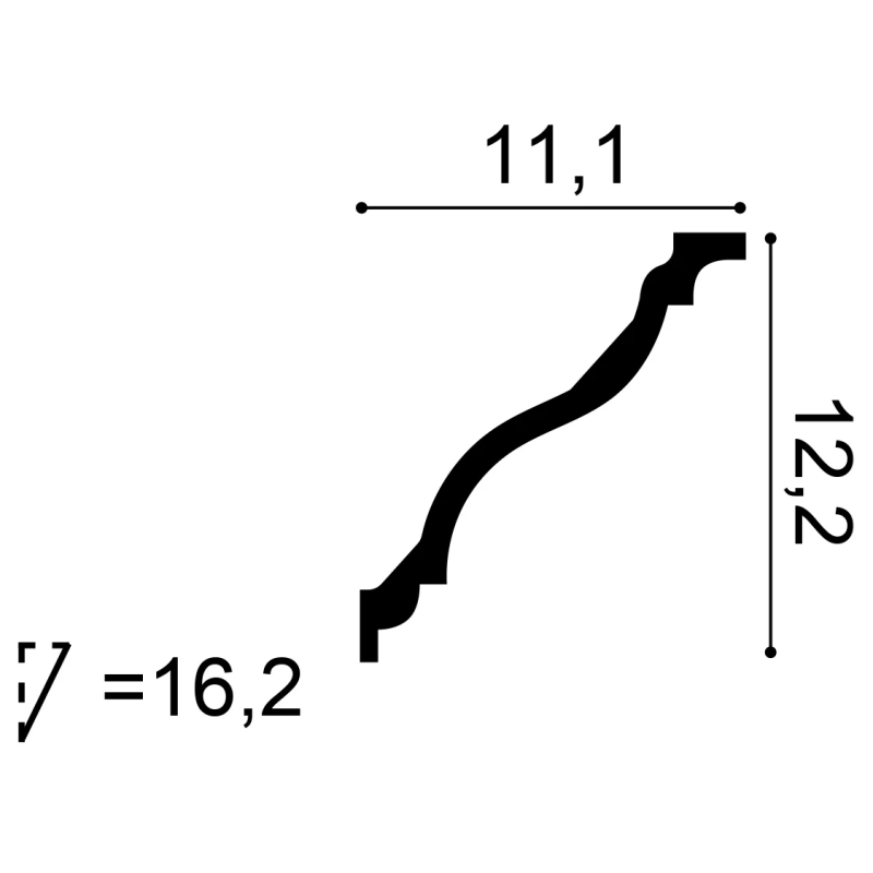 Les dimensions de la Corniche Montrouge sont :- L 200 x H 12,2 x L 11,1 cm