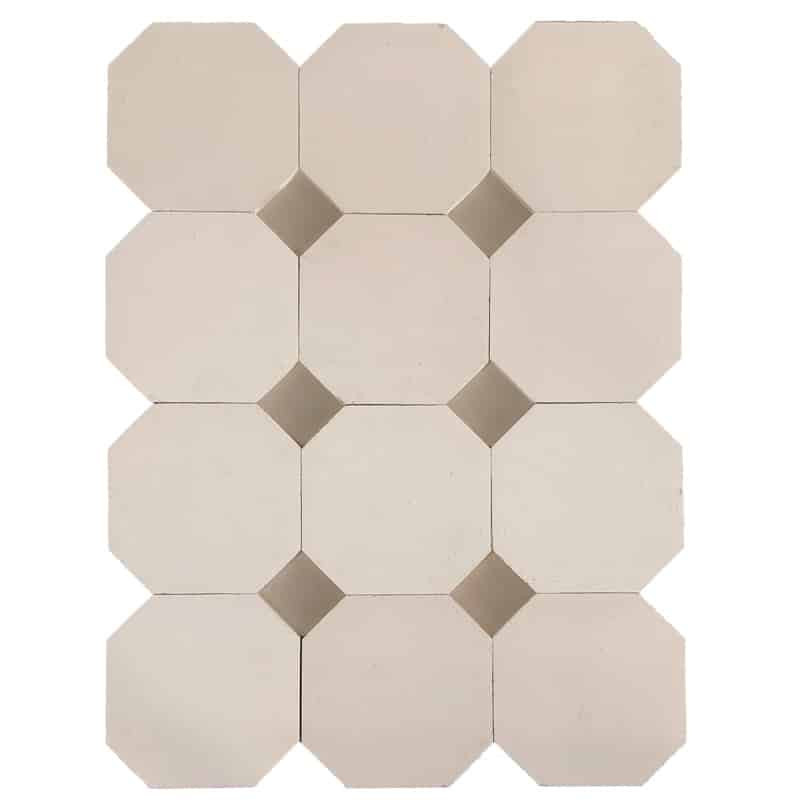 Fabriqué artisanalement en France, le dallage à cabochons Poillé avec cabochons colorés est réalisé en pierre reconstituée. Ce matériau, composé de grains de pierre mélangés à des liants naturels, est moulé pour imiter l’aspect traditionnel de la pierre naturelle. Ce dallage se pose sur les sols intérieurs et extérieurs. Il allie esthétique, résistance et durabilité, offrant une alternative de qualité aux pierres naturelles. La pierre reconstituée est particulièrement résistante aux chocs et aux variations de température, tout en étant plus abordable, sans compromettre la qualité. Le dallage à cabochons Poillé se distingue par ses grandes dalles octogonales connectées par de petites dalles carrées aux coins, créant un motif élégant et harmonieux. La finition “adoucie” assure une surface lisse, ajoutant au charme de ce dallage. Il est idéal pour divers espaces, tels que le salon, la cuisine, l’entrée ou la chambre, et se distingue du dallage Saint-Honoré par ses cabochons colorés et ses dalles octogonales à quatre angles coupés. Ce dallage s'associe parfaitement avec notre bandeau périphérique en pierre reconstituée.COMMENT POSER ET ENTRETENIR SON DALLAGE À CABOCHONS POILLE AVEC CABOCHONS COLORÉS ?