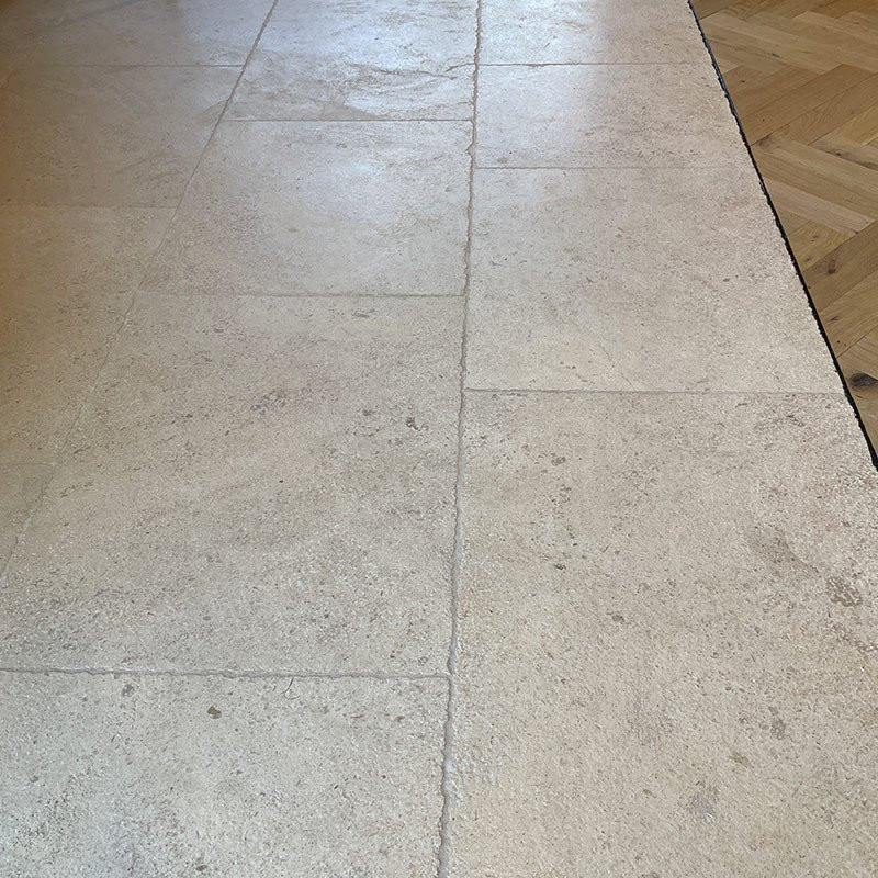 Pour la pose de votre dallage, munissez-vous de la colle et du joint ton pierre. Prévoyez toujours un ou deux sacs de plus que votre besoin. Commencez par appliquer le mortier colle sur la surface sur laquelle le dallage sera posé en prenant soin d’enlever le surplus. Encollez votre dalle pour obtenir une meilleure adhérence à la surface. Au fur et à mesure de la pose, nous vous conseillons de mettre des croisillons entre chaque dalle pour faciliter l’application du joint. Sachez que nous proposons aussi pour ce produit un joint ton gris. Après la pose de ce dallage, il est impératif de protéger ce dallage avec un traitement oléofuge et un hydrofuge adaptés.