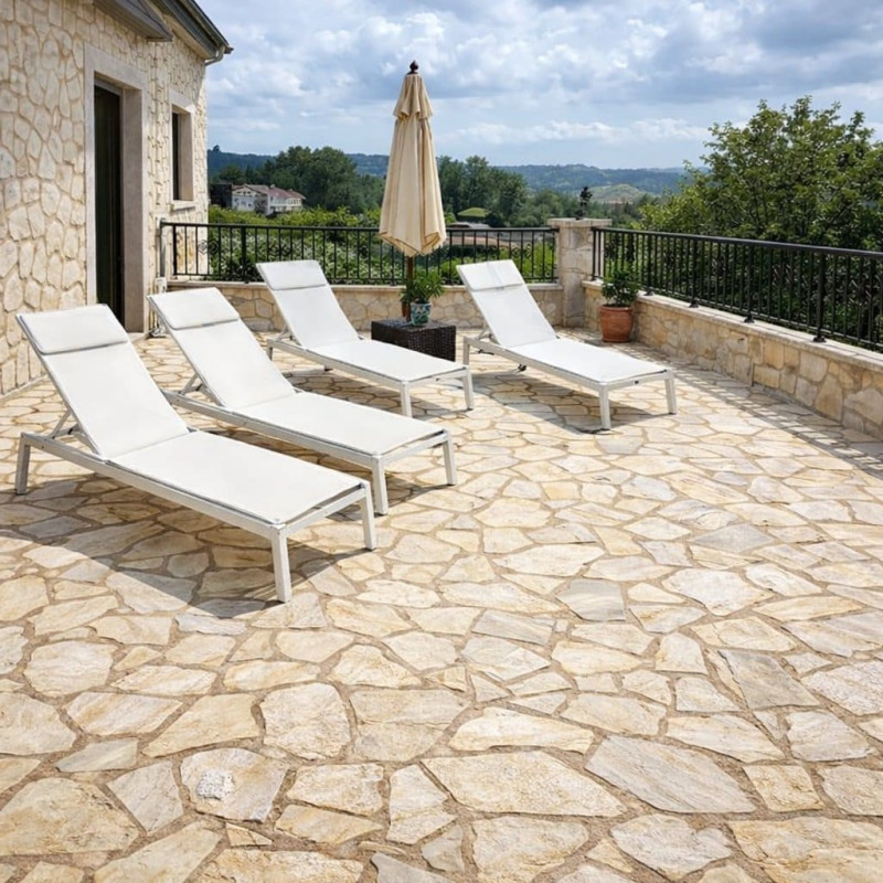 Vous souhaitez créer une terrasse lumineuse et raffinée ? Dans ce cas, le marbre jaune clair constitue un excellent choix. En effet, ses teintes délicates et ses reflets dorés apportent immédiatement clarté et caractère à vos sols.
