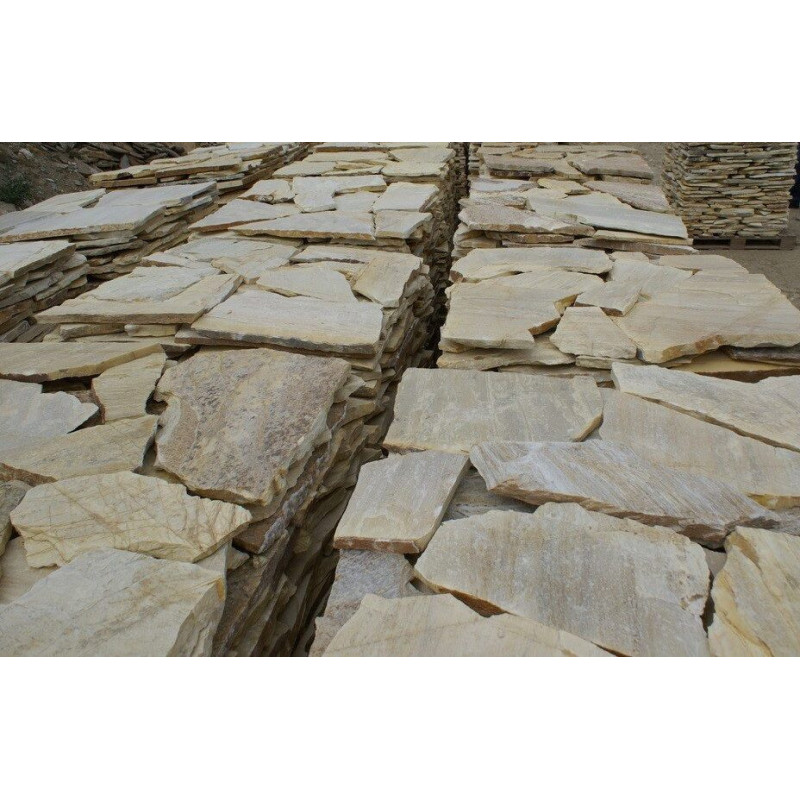 Nos dallages en marbre jaune clair sont proposés en format Opus Incertum. Leur épaisseur varie entre 2,5 et 3 cm, selon les pièces.