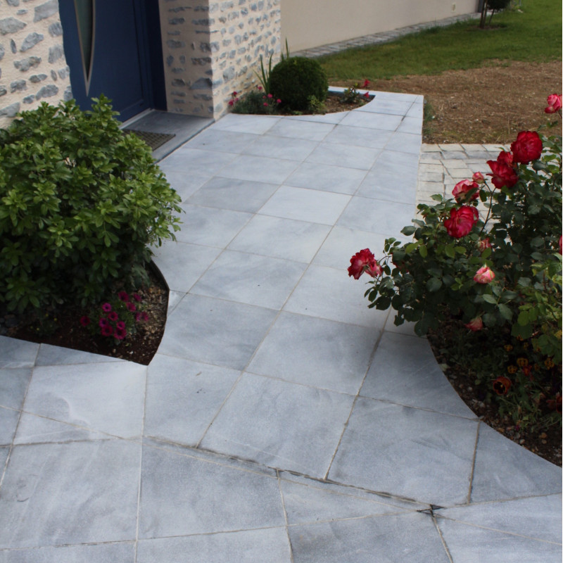 Comment poser et entretenir les dalles en pierre bleue sablée ?