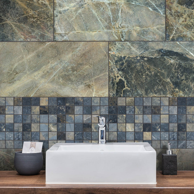 Amateurs de parement en pierre naturelle, découvrez l'élégance intemporelle de notre mosaïque en marbre Ocre.