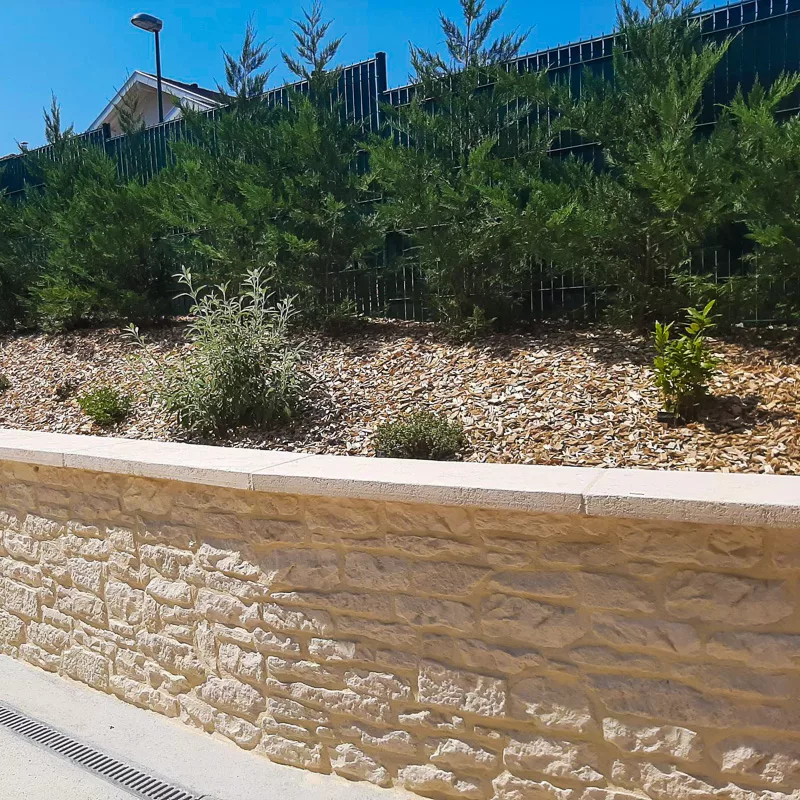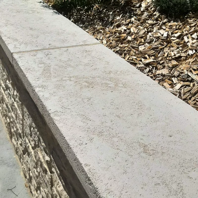 Ce dessus de mur en pierre reconstituée est fabriqué sans système de goutte d’eau.