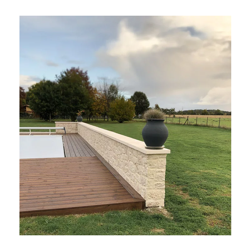 Sur certaines photos, le dessus de muret peut paraître légèrement grisé. Cependant, cette nuance provient généralement de la poussière en atelier. Avec le temps, une patine naturelle peut également se déposer en surface.