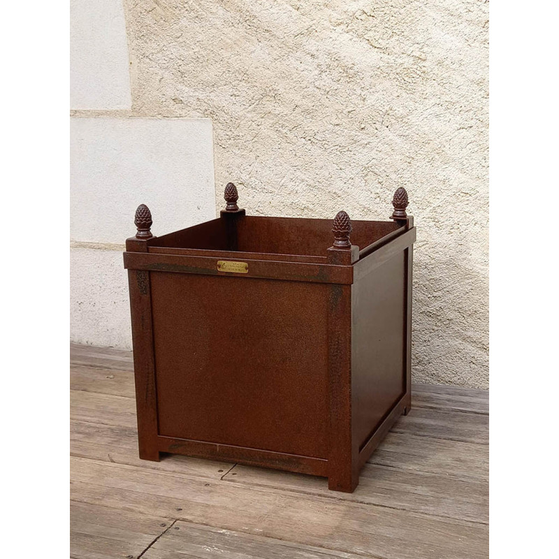 Ce modèle est réalisable sur-mesure, pour s'adapter parfaitement à votre espace. Contactez-nous ! Ce bac à oranger pour le jardin en métal effet rouillé, est proposé sous cette dimension : - 60 x 60 cm de largeur et 78 cm de hauteur. Ce produit pèse 35 kg. L'épaisseur du métal est de 2,5 mm sur les côtés et 3 mm pour le fond. Si vous souhaitez une dimension plus petite, laissez-vous tenter par le petit bac à oranger !