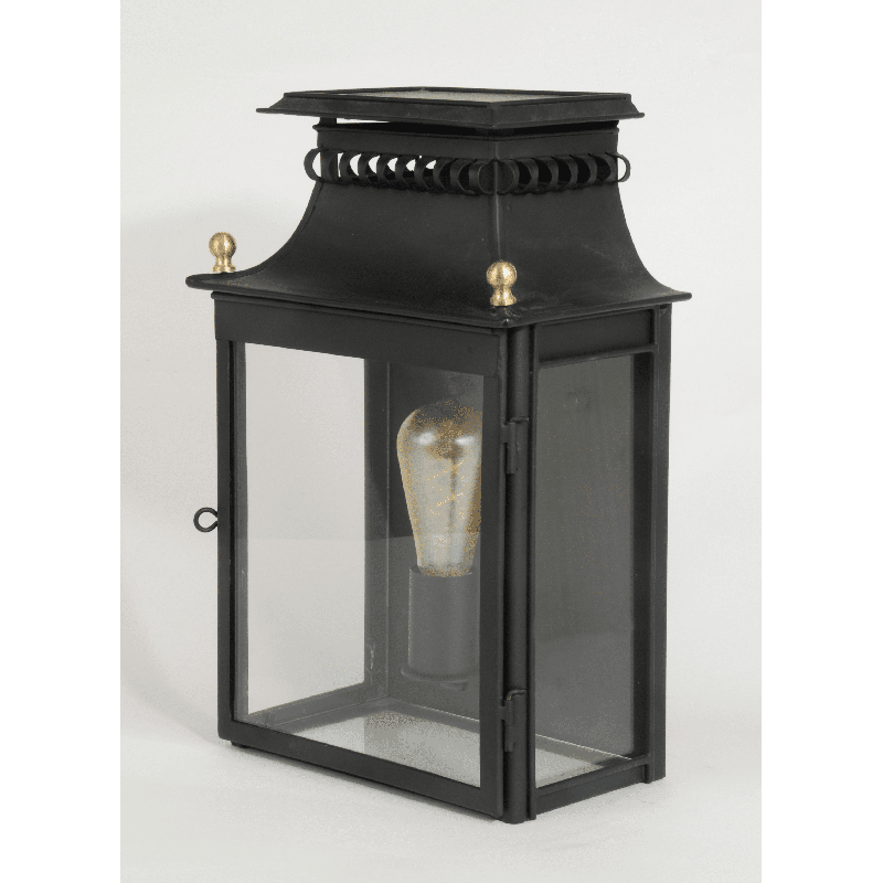 Habillez vos murs de la jolie lueur de cette lanterne bordelaise aux décors simples mais très élégants. Cette lanterne bordelaise est très joliment décorée. D'abord, elle est noire, contrairement à la majorité de nos références, qui sont marron. Elle dispose de deux petites décorations dorées sur le chapeau, ainsi que de magnifiques reliefs en haut de ce dernier. Les lignes sont pourtant très simples, mais ces détails viennent lui apporter un charme indéniable. Cette lanterne habillera vos murs avec sa délicate lueur. AInsi, dans votre maison, mais également dehors, elle apportera une véritable touche d'élégance.