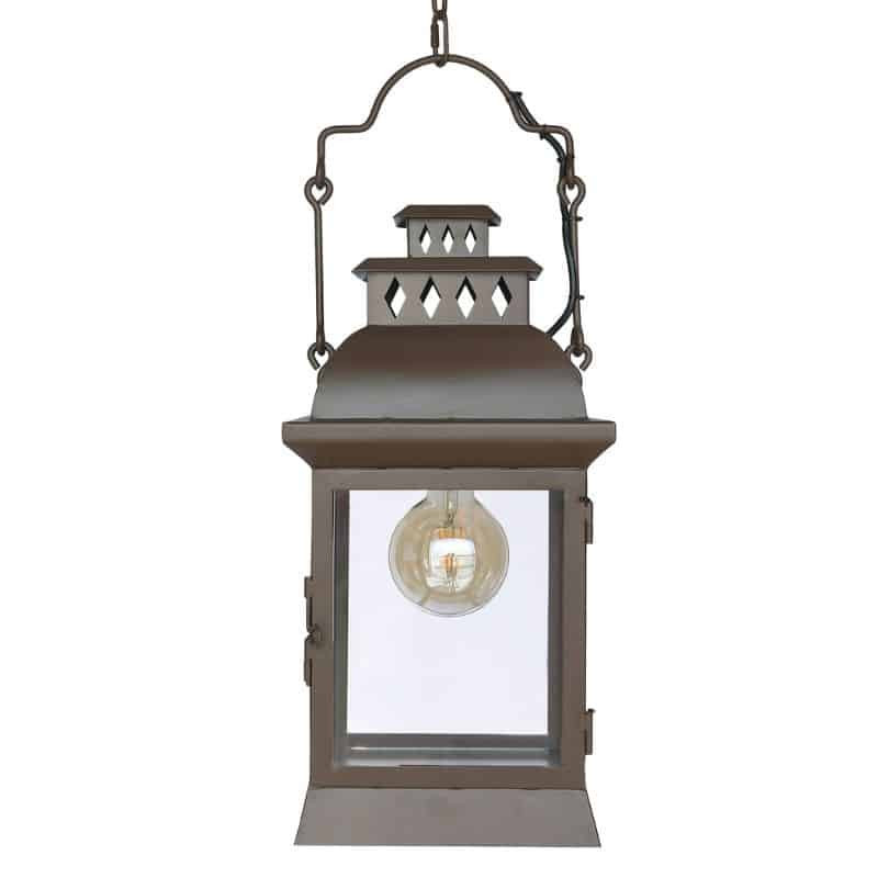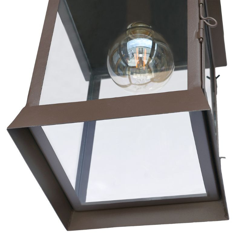 Sobre, élégante et intemporelle, cette lanterne est idéale peu importe le style de votre maison ! Cette lanterne est très élégante : l'ampoule est disposée dans un coffre rectangulaire avec des parois en verre. De plus, le chapeau de cette lanterne contient quelques décorations, notamment des losanges découpés directement dans le fer, et ce sur deux rangées. C'est un très beau produit qui apportera une élégance indéniable à l'intérieur ou à l'extérieur de votre maison.