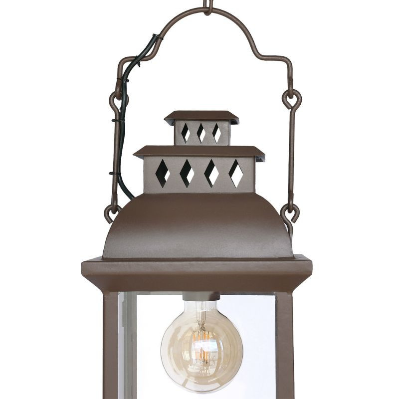 Sobre, élégante et intemporelle, cette lanterne est idéale peu importe le style de votre maison ! Cette lanterne est très élégante : l'ampoule est disposée dans un coffre rectangulaire avec des parois en verre. De plus, le chapeau de cette lanterne contient quelques décorations, notamment des losanges découpés directement dans le fer, et ce sur deux rangées. C'est un très beau produit qui apportera une élégance indéniable à l'intérieur ou à l'extérieur de votre maison. Cette lanterne est de couleur marron : une nuance sobre et intemporelle. Associé à la neutralité du design, ce produit pourra donc s'intégrer dans bien des décors, qu'ils soient contemporains ou plus traditionnels. Les dimensions de cette lanterne sont de 58 cm de hauteur du haut de l'anse au bas de la lanterne pour une largeur et une profondeur de 23 x 23 cm. C'est un modèle de taille moyenne qui a été fabriqué en fer thermolaqué, une matière qui ne craint pas la pluie, ni le gel, ni la chaleur, ni la corrosion.