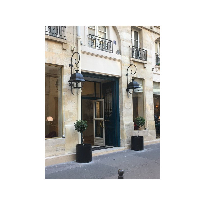 Pour mettre en valeur une façade, un chemin ou une entrée, choisissez cette lanterne Ile de France, un produit original ! Cette lanterne possède des proportions originales : la partie haute est aussi grande que le corps de la lanterne, ce qui est assez rare. De plus, la forme du haut de la lanterne est plutôt courbée, alors que le reste est linéaire et géométrique. Enfin, de petites tiges en métal partent de chaque arrête du bas de la lanterne. C'est donc un produit élégant et original qui a su garder sa sobriété. Grâce à cette polyvalence, cette lanterne s'intègrera aussi bien dans les décors contemporains qu'anciens. Pour davantage d'élégance, vous pouvez disposer cette lanterne sur une potence. Nous en proposons de nombreuses, découvrez-les ! Cette lanterne mesure 85 cm de hauteur pour une profondeur et une largeur de 45 x 45 cm. C'est un produit relativement grand qui ne passera pas inaperçu. Il est constitué de fer thermolaqué, un matériau à priori sensible à la rouille, mais immunisé grâce à sa peinture spéciale. De même, il résiste très bien à n'importe quel type d'intempéries.