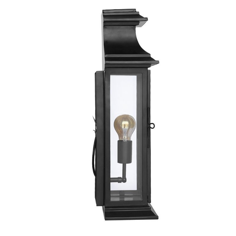 Sobre et raffinée, cette lanterne murale apportera un éclairage chaleureux à votre demeure. Répondant à toutes les normes électriques modernes des luminaires de jardin, cette lanterne est prête à installer. Le dessin de cette lanterne s’inspire librement d’une lanterne ancienne mais son aspect général a été modernisé. La norme IP44 qui certifie ce produit stipule, notamment, que le luminaire doit résister aux projections d'eaux. Cette lanterne est déjà électrifiée et n'a plus qu'à être posée. L'ampoule à vis gros culot n'est pas fournie. En revanche, tous es éléments pour fixer la lanterne au mur sont fournis. Cette lanterne est facile à nettoyer car les vitres s'enlèvent et se remettent facilement. Idéale pour un projet de rénovation, cette lanterne en fer thermolaqué noir est très résistante. Issues d’un travail artisanal, toutes nos lanternes sont des luminaires d’extérieur ou d’intérieur. Cette lanterne a un excellent rapport qualité / prix. Cette lanterne en fer mesure 54 cm de hauteur pour une largeur de 21,5 cm et une profondeur de 16 cm. Le poids total de cette lanterne comprenant les vitres est de 3,7 kg.