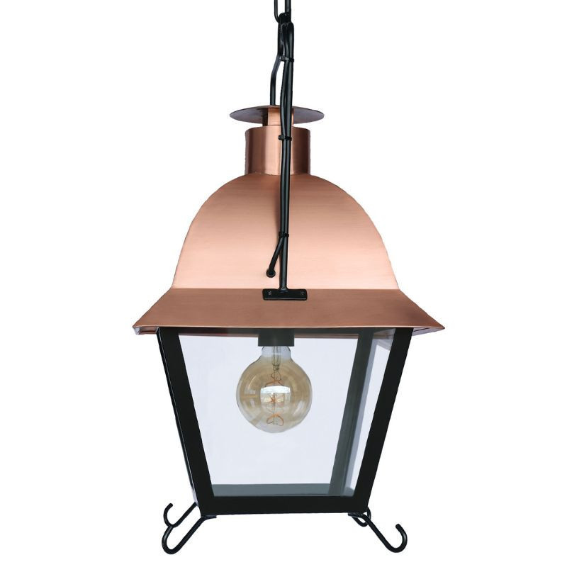 Cette lanterne Quai de Seine est une de nos plus belles pièces grâce à son chapeau en cuivre. Découvrez-la ! La partie inférieure de cette lanterne est constituée de fer thermolaqué, une matière incroyablement solide. De plus, grâce à la peinture spéciale qui a été réalisée, ce produit ne craint ni les éléments (pluie, vent, gel, etc.), ni la corrosion. Elle gardera son aspect originel pendant des années ! Le chapeau, quant à lui, est constitué de cuivre, un excellent isolant thermique. Ainsi, la partie supérieure de votre lanterne ne surchauffera pas. De plus, il offre une teinte noble et élégante. Les dimensions de ce produit sont de 62 cm de hauteur pour une largeur et une profondeur de 36 x 36 cm. C'est une lanterne de taille moyenne qui pourra être installée à l'intérieur ou à l'extérieur de votre maison : pour éclairer un chemin, une entrée, ou bien une pièce de votre habitation. Elle pourra également se fondre dans de nombreux styles : modernes comme anciens. Vous pouvez également l'associer à une potence, pour la mettre davantage en valeur. Nous en possédons pour tous les goûts, découvrez-les !