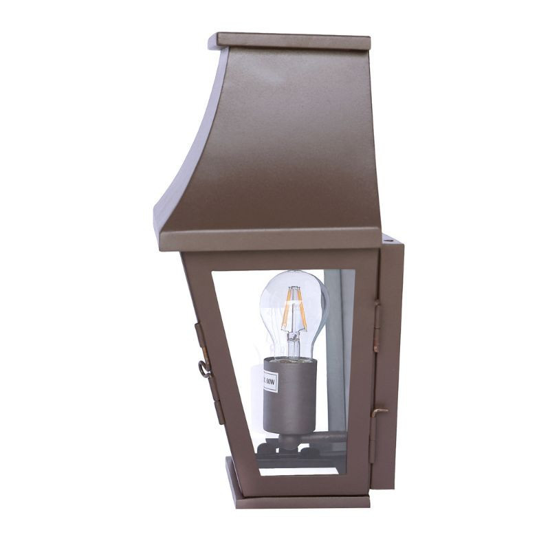 Constituée de fer thermolaqué, cette lanterne Rochelaise ne craint ni les intempéries ni la corrosion. Cette lanterne murale est constituée de fer thermolaqué, un matériau présentant bien des avantages. D'abord, le fer est un métal solide et résistant. De plus, la peinture spéciale qui a été appliquée rend cette lanterne résistante aux intempéries, mais surtout à la corrosion. Ainsi, même si elle reste sous la pluie, cette lanterne ne se dégradera pas. Ses dimensions sont les suivantes : 37 cm de hauteur, 26 cm de largeur et 17 cm de profondeur. C'est une lanterne de taille relativement modeste, qui ne passera pas inaperçue pour autant. Son style est sobre et intemporel, elle pourra ainsi se fondre dans beaucoup de décors, modernes comme contemporains. De plus, ses lignes sont tantôt droites, tantôt courbées, pour un ensemble harmonieux et très esthétique. Cette lanterne a été conçue pour être accrochée contre un mur. Ainsi, pour éclairer la façade extérieure de votre maison, ou bien un mur dans une de vos pièces, cette lanterne sera idéale. Elle apportera une certaine élégance et une touche artistique.