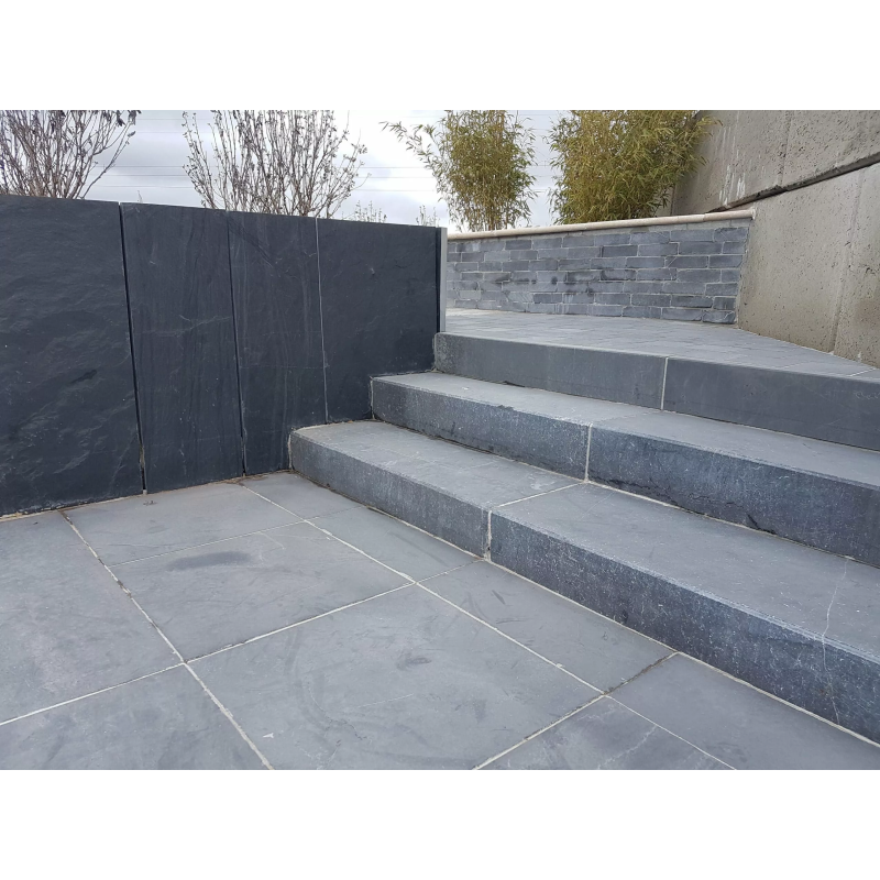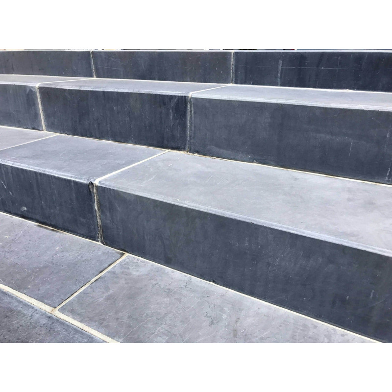 Ces marches en pierre bleue proviennent d'une roche sédimentaire calcaire. Celles-ci ont pour avantage d'être résistantes aux gelées hivernales. La pierre bleue est idéale pour une ambiance zen et sobre dans sa décoration. Ces marches possèdent de très jolies nuances bleu foncé.