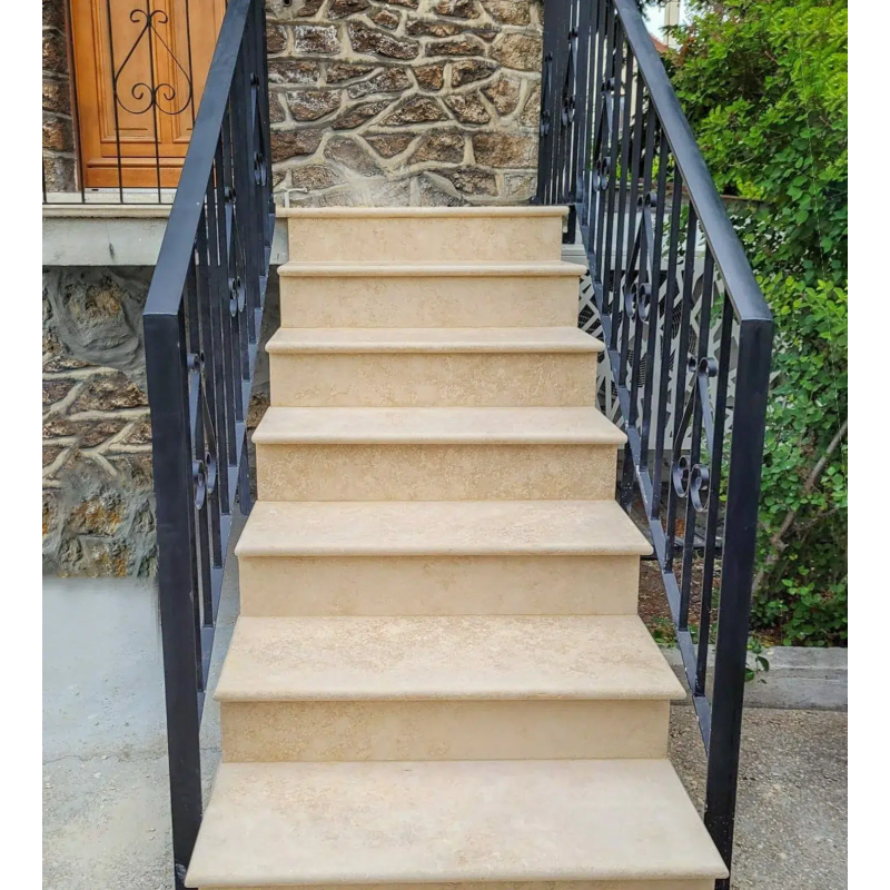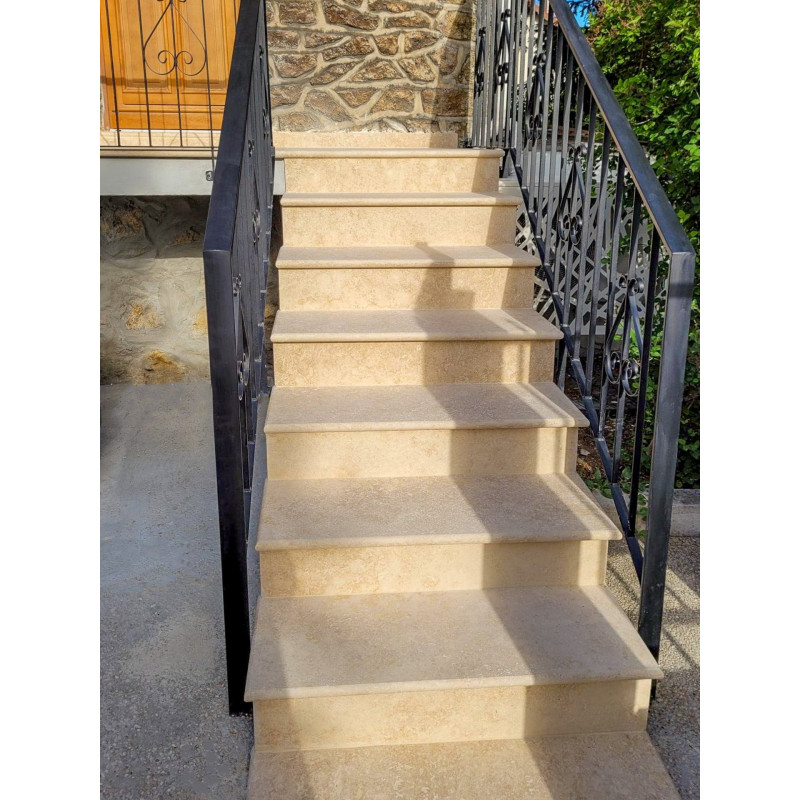 marche en travertin mix dans une teinte plus prononcée. De plus, pour vous rendre compte du résultat escompté, vous pourrez découvrir une photo d'un escalier réalisé avec cette marche (il n'y a que la teinte qui différera légèrement de la