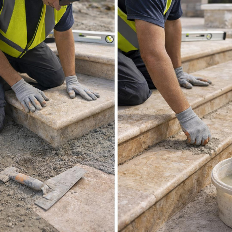 Cependant, pour une protection optimale, nous vous recommandons de traiter la pierre dès la pose avec un imperméabilisant. Ce traitement protège efficacement vos marches contre les taches et l’humidité.