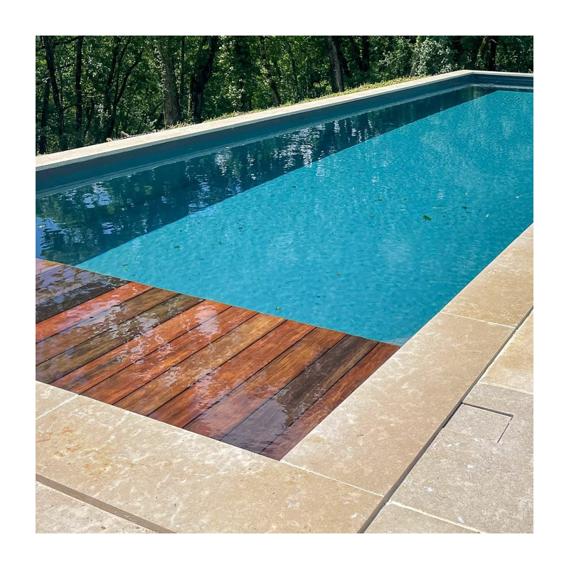 Découvrez notre magnifique margelle Templier, conçue pour embellir votre future piscine ou vos escaliers avec élégance. Cette margelle est fabriquée à partir d'une pierre naturelle de haute qualité. Celle-ci est non gélive et extrêmement résistante aux chocs. Chaque pièce est méticuleusement réalisée à la main. Ces margelles en pierre claire sont spécialement conçues pour durer et offrir une qualité exceptionnelle. Elles se fondent facilement dans tous les styles de décoration, qu'ils soient anciens ou modernes. Polyvalente, cette margelle convient aussi bien à une utilisation en extérieur qu'en intérieur, que ce soit pour une piscine ou un escalier. Son bord présente un angle droit précis, conférant une finition soignée et raffinée. Optez pour cette margelle exceptionnelle et créez un espace à la fois esthétiquement plaisant et fonctionnel, où le design et la durabilité se marient harmonieusement. Associez cette margelle avec le dallage Templier !Quelles sont les dimensions de la margelle Templier ?