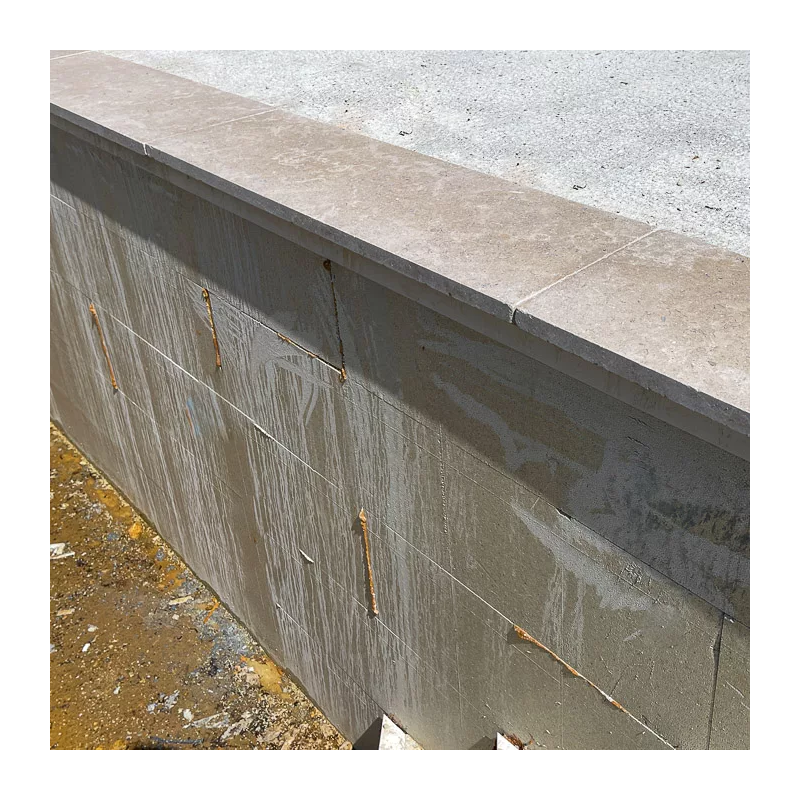 - Pose des margelles : Commencez par appliquer une fine couche de mortier sur la surface de support. Placez ensuite la margelle sur le mortier et appuyez fermement pour la faire adhérer. Utilisez le marteau en caoutchouc pour tapoter légèrement la margelle et la mettre de niveau. Vérifiez l’horizontalité à l’aide d’un niveau à bulle.