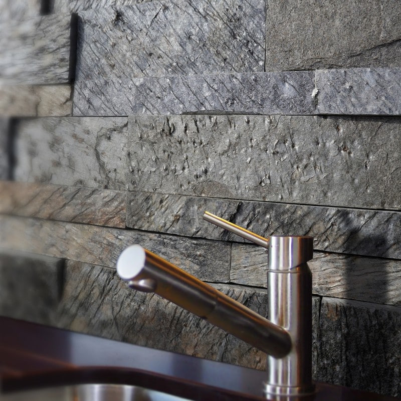 Supports admissibles : • Support plein en béton composé de granulats courants • Support plein béton d’argile expansé, banché ou préfabriqué de 2 à 3 mois d’âge • Enduit au mortier de ciment out bâtard sur maçonnerie de 3 semaines d’âge • Plaque de plâtre collée sur support béton • Plaque de plâtre sur ossature métal renforcée (entraxe de 40 cm) Planéité : la tolérance de planéité doit être inférieure à 5 mm sous la règle de 2 mètres et à 2 mm sous la règle de 20 cm pour un enduit ciment ou un béton de granulats. Propreté : la surface du support doit être propre, exemple d’huile de décoffrage et non lisse. Humidité : le collage ne doit pas s’effectuer sur un support humide, par temps chaud ou sur support très poreux. Il y a lieu de l’humidifier préalablement à la mise en œuvre Température de la surface avant la pose : entre 5 °C et 25 °C. POSE Afin de tenir compte des coupes, merci de commander la quantité totale + 5 % de marge. Il est conseillé de mélanger les lamelles des différentes boites afin d’obtenir une uniformité. Un double encollage au ciment colle est indispensable sur le dos des lamelles et sur le support à revêtir. APRÈS LA POSE Après la pose, il est impératif de ne pas arroser les lamelles avec de l'eau. Aucun joint n'est nécessaire. Les joints de gros œuvre ou de dilatation doivent suivre la même largeur et le même emplacement dans le revêtement, recouverts d'un couvre-joint. Les joints de fractionnement doivent avoir une largeur minimale de 5 mm et être remplis d'une matière déformable. Les surfaces raccordées ne doivent pas dépasser 60 m² (joints horizontaux tous les 6 mètres et joints verticaux tous les 10 mètres). La hauteur maximale autorisée pour un revêtement mural collé est de 8 mètres (2 étages). À l'extérieur, les arêtes supérieures des lamelles doivent être impérativement protégées par des dispositifs appropriés tels que couvertines, corniches, bandeaux, bavettes, avec des rainures pour évacuer les gouttes d'eau, afin d'empêcher l'infiltration d'eau de pluie entre le mur et le revêtement. ENTRETIEN L’entretien débute par un tout premier nettoyage au moyen d’un produit adéquat à utiliser qu’une seule fois. Cela pourra se faire environ 1 semaine après la pose. Ensuite, il faudra laisser le revêtement suffisamment sécher avant tout autre traitement (environ 1 mois). Pour une durabilité accrue, nous recommandons l’application de notre hydrofuge incolore spécialement élaboré pour protéger la pierre naturelle des agressions extérieures et des taches.