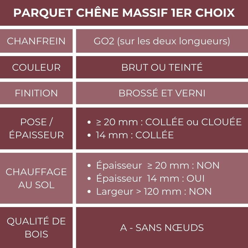 Les caractéristiques du parquet en chêne massif Premier Choix