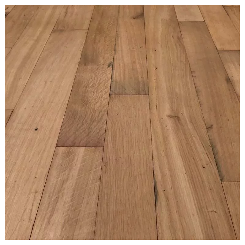 Ce produit est une réédition de parquet en chêne massif ancien. Celui-ci est de fabrication neuve, mais a été conçu à partir de bois ancien pour un rendu naturel et plus authentique. Vous disposez donc de tout le charme du bois ancien associé à la facilité de pose des parquets neufs. De plus, ce bois issu de forêt française, comporte de nombreux nœuds, pour un effet encore plus naturel. Ce parquet vieux bois trouvera sa place dans votre cuisine, vos chambres, votre salon. Les dalles de parquet massif en chêne ancien ont une épaisseur de 20 mm et peuvent être installées en pose collée ou clouée. Elles sont également disponibles en différentes largeurs et longueurs pour s'adapter à votre espace. Ce sol est intemporel. Il peut être utilisé dans des maisons anciennes comme contemporaines, le parquet en bois est une valeur sûre ! Il est inspiré du style Haussmannien, apparu pendant le Second Empire, relatif à Georges Eugène Haussmann, préfet de la Seine sous Napoléon III. En termes d'entretien, le bois massif nécessite un entretien régulier pour préserver sa beauté et sa durabilité, mais reste très résistant dans le temps. Ce parquet traditionnel en chêne est très solide et résistera très bien au temps pour peu qu'il soit entretenu régulièrement avec des produits adaptés au bois. Découvrez aussi notre plancher de wagon ancien, notre parquet industriel en sapin ainsi que notre parquet vieilli.Les dimensions du parquet traditionnel Haussmannien
