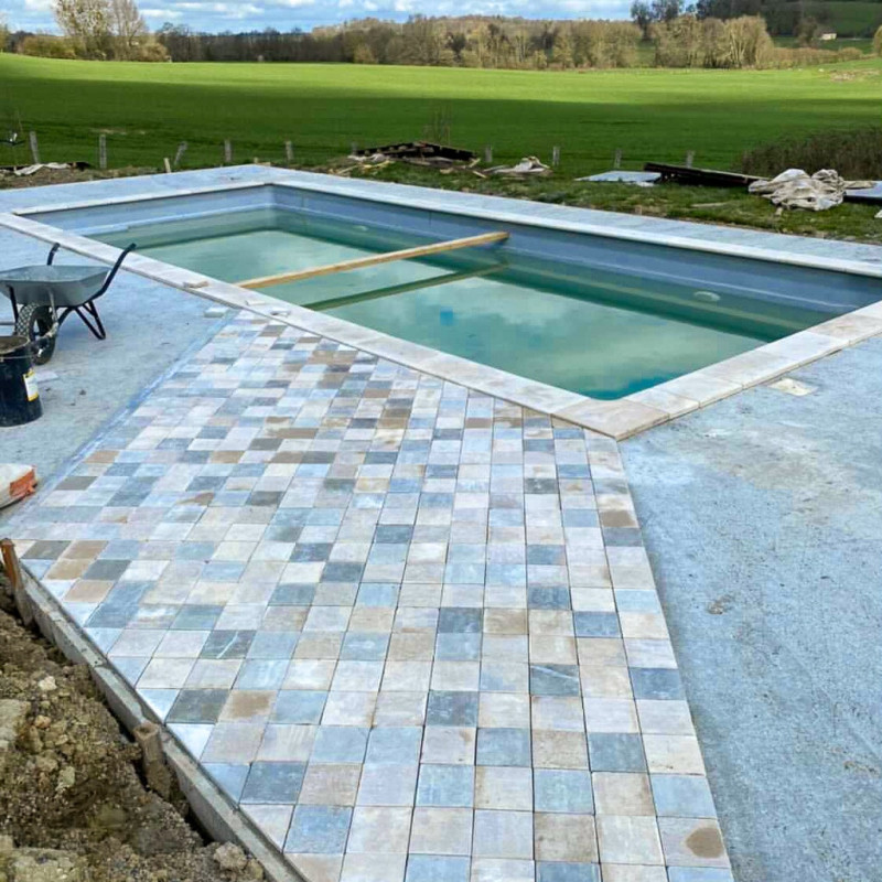 Vous aimez les jolis pavages ? Laissez-vous tenter par le charme de ce pavage traditionnel. Ces pavés en pierre calcaire naturelle offrent de belles nuances de différentes couleurs qui apporteront un certain cachet à votre espace. Les couleurs varient du brun au gris, en passant par le marron clair ou le beige. L’ensemble est très harmonieux.