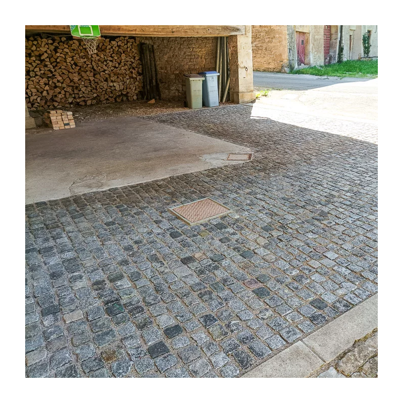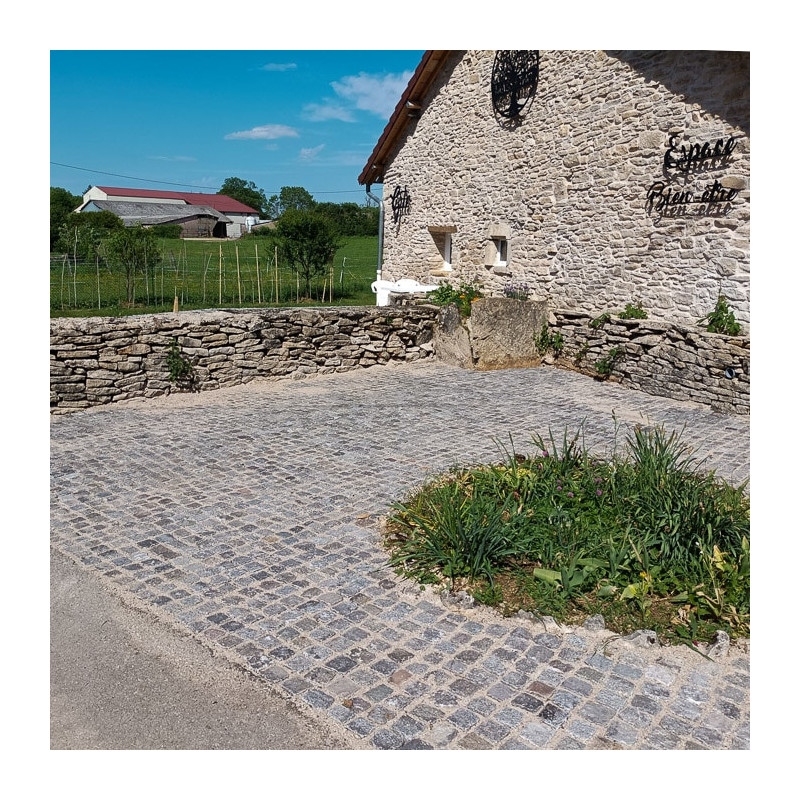 - 8 à 10 cm de longueur x 8 à 10 cm de largeur x 8 à 10 cm d'épaisseur, soit ≈105 pavés / m²