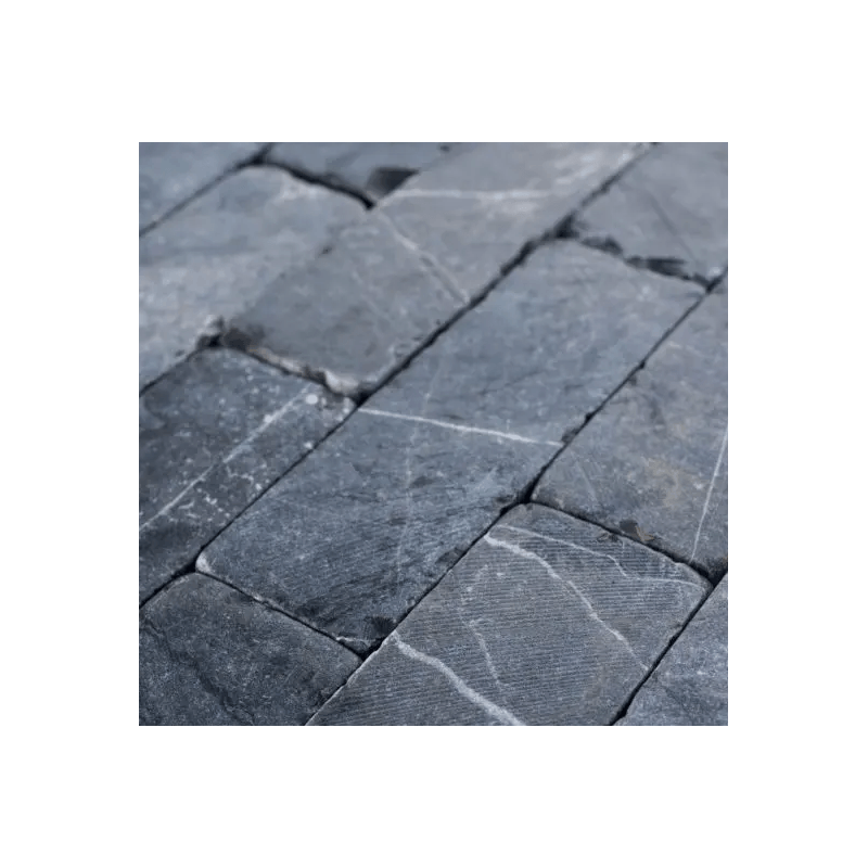 - Finition vieillie : Le pavé en pierre bleue vieilli est une excellente alternative aux pavés en béton classiques. Sa couleur bleu foncé et son aspect vieilli lui confèrent un charme indéniable. Ils possèdent des bords dit « vibrés » (irréguliers) et une surface patinée lisse. Hautement résistants et abordables, ces pavés s’harmonisent très bien avec le Dallage Pierre Bleue. Pour l'entretien régulier, utilisez un produit neutre et sans acide.