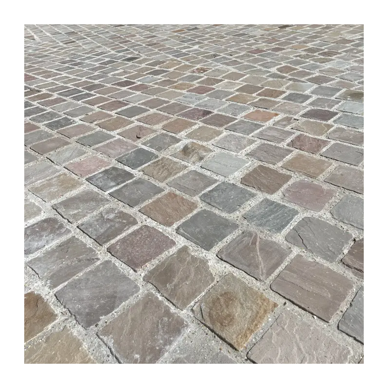 Le pavé grès Kandla multicolore sublime une terrasse, une cour ou une allée. Grâce à son panachage naturel, il crée un rendu vivant et chaleureux.