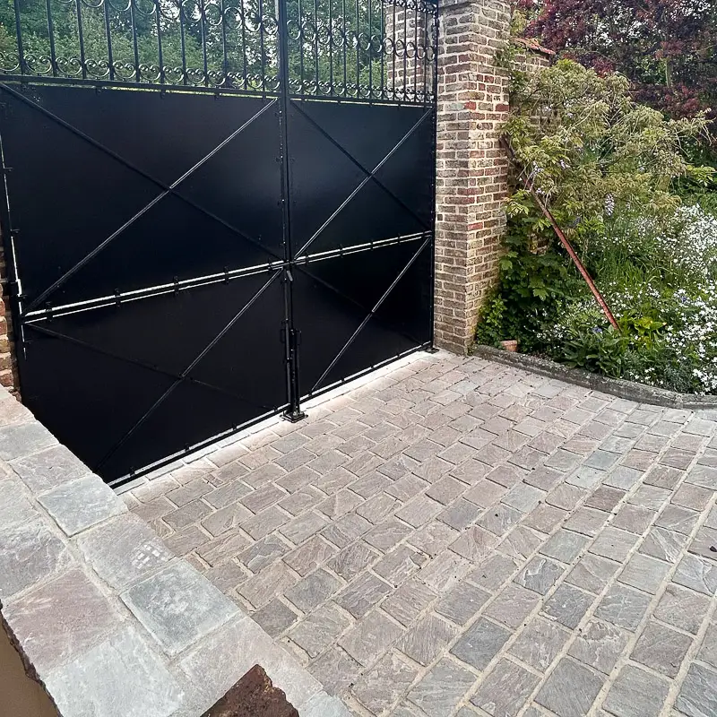 Pour un rendu homogène et durable, privilégiez notre joint en sable polymère. En effet, il stabilise les pavés, limite la pousse des mauvaises herbes et résiste aux intempéries. De plus, il préserve l’esthétique naturelle du grès multicolore.