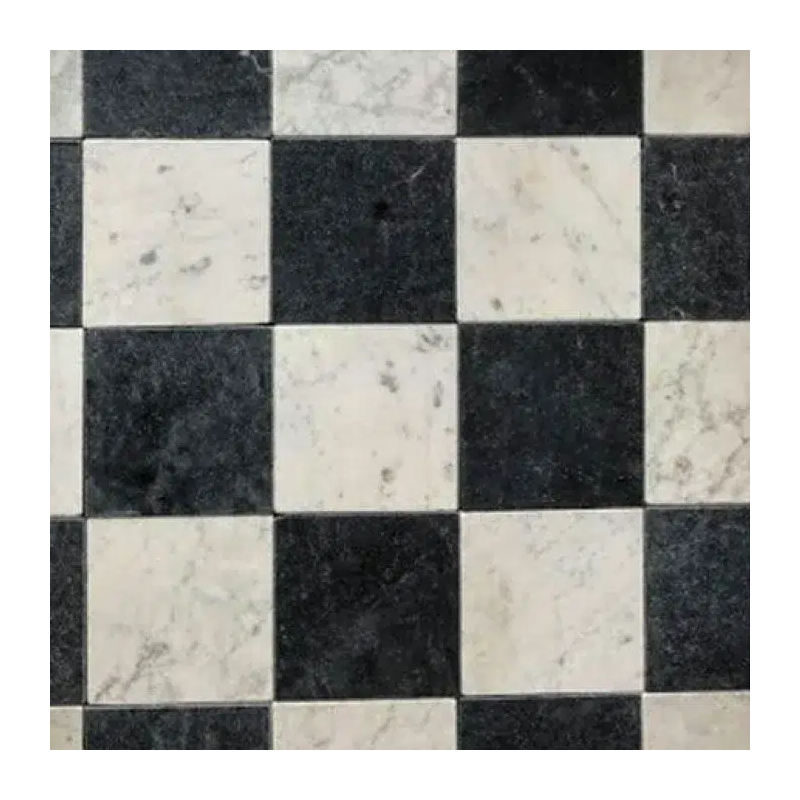 À la recherche d’un revêtement en marbre esthétique et authentique ? Parmi tous nos dallages, vous trouverez nos authentiques dallages à damier. Les dallages à damier comptent parmi les dallages les plus qualitatifs proposés par Ligerio. Découvrez le petit dallage à damier. Ce revêtement est une réédition de dallage à damier du XVIIᵉ siècle. Ce petit dallage à damier est composé de carreaux blancs en marbre et de carreaux noirs en pierre bleue. Afin d’accentuer son caractère unique, les bords des carreaux sont dotés d’une finition vieillie. Fabriqué en marbre vieilli, cette pierre naturelle offre beaucoup d’avantages. Cette matière unique, noble et très robuste, conférera beaucoup