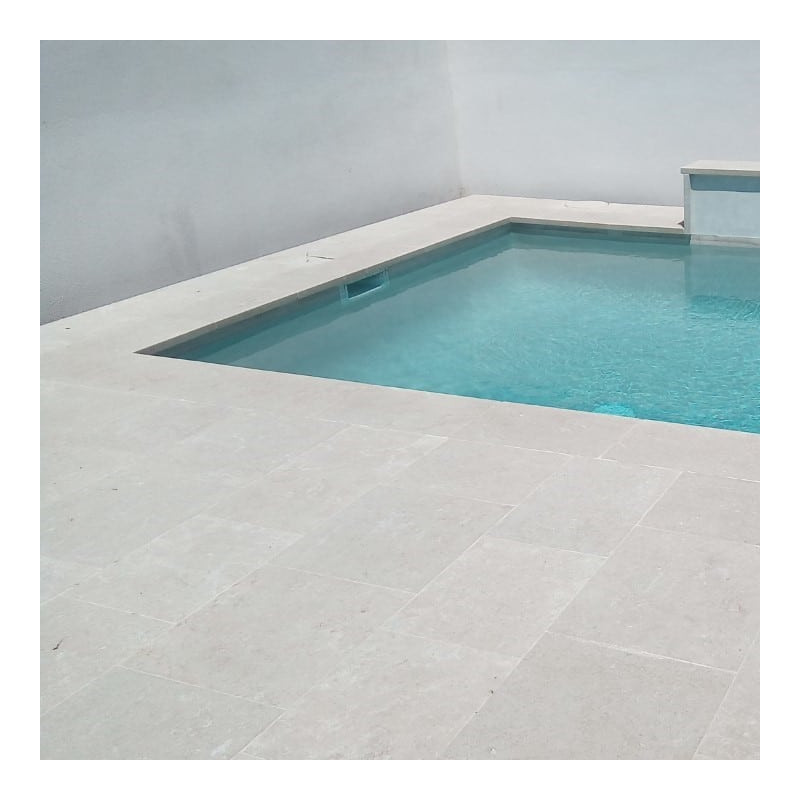 Découvrez la pierre calcaire blanche Moleanos - Pour les amoureux des dalles en pierre claire, cette pierre naturelle transformera vos espaces extérieurs en véritables oasis de luxe.
