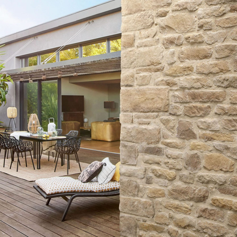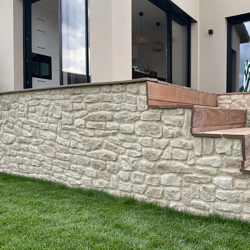 La pierre de parement Causse s’inspire de la pierre calcaire sèche au grain fin.Ainsi, elle séduit par la richesse de ses teintes et ses dimensions panachées.