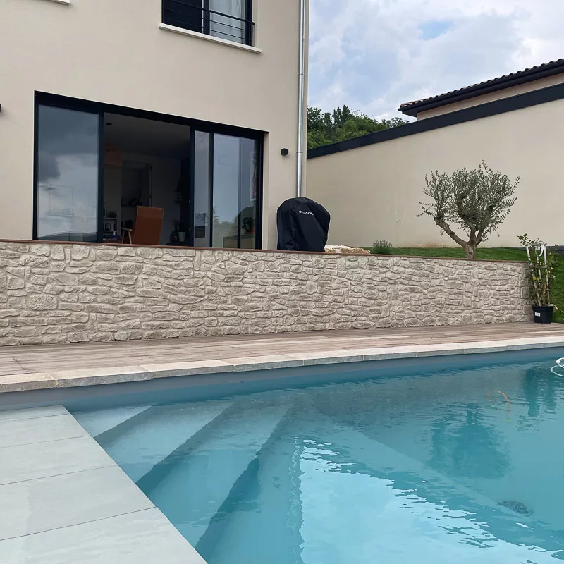 La pierre de parement Causse associe fines pierres naturelles et liants naturels. Ce procédé garantit un excellent compromis entre esthétique, durabilité et budget. En effet, la pierre naturelle devient plus coûteuse. C’est pourquoi ORSOL propose une alternative fiable et accessible. Vous profitez ainsi du charme authentique de la pierre, à un prix maîtrisé.