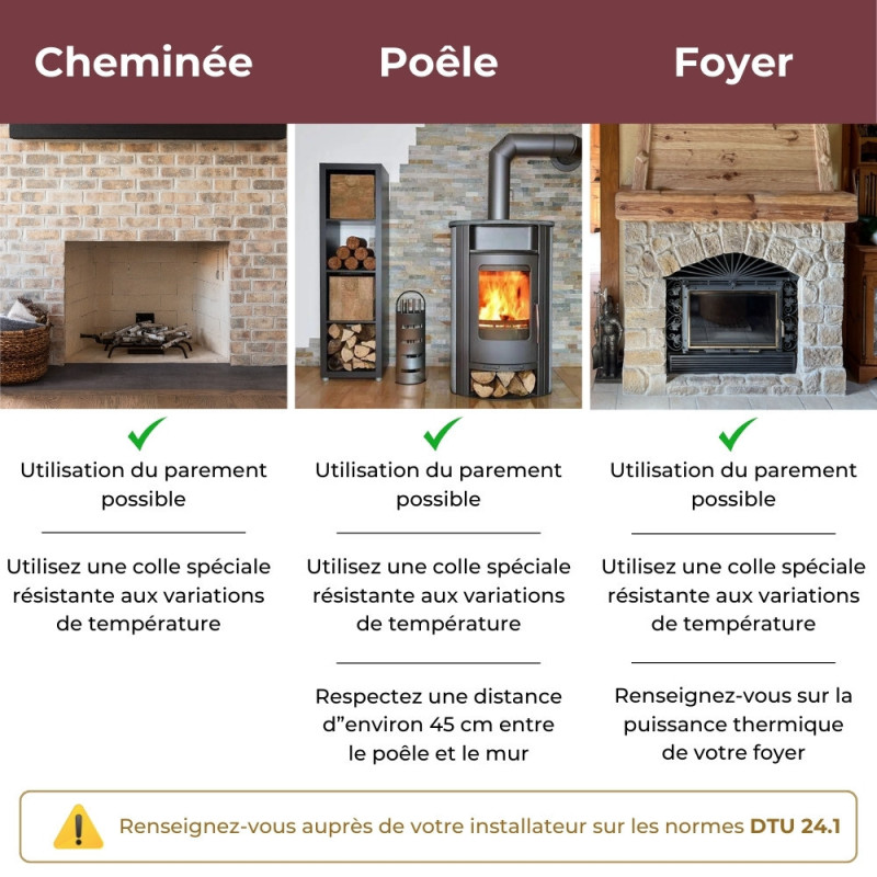 ORSOL fabrique ce parement en France. Vous bénéficiez donc d’un savoir-faire reconnu et d’un contrôle qualité rigoureux. Ce parement se pose pierre à pierre. La mise en œuvre reste simple : collez, assemblez, jointoyez, puis admirez le résultat. De plus, il convient aux projets intérieurs comme extérieurs. Grâce à son classement A1, il résiste aux hautes températures.