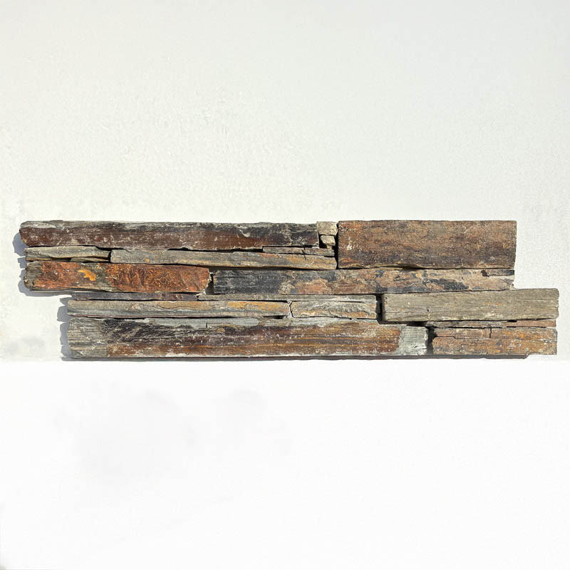 Ce parements de pierre effet rouille Isle est composé de nuances de gris, ocre, beige, brun et noisette. Ce parement est vendu en plaquette au format Z. Les pierres sont directement scellées dans une base béton pour faciliter la pose du parement. Deux agrafes métalliques placées en haut et en bas de chaque plaquette permettent une fixation mécanique en plus de la colle, lorsque nécessaire. Les plaquettes de parement sont toutes au même format, mais la disposition des pierres au sein d’une plaquette n’est pas la même afin avoir un rendu beaucoup plus naturel une fois posé. Notre pierre de parement provient d’Asie. C’est la solution idéale pour apporter du caractère et de la profondeur à vos murs. Cette pierre de parement peut être installée aussi bien en intérieur qu’en extérieur. Afin d'harmoniser votre espace, utilisez notre angle Isle. Cette pierre de parement est vendu en "plaque en Z", rendant la pose très simplifiée. Explorez notre gamme de plaquettes de parement.QUELLES SONT LES DIMENSIONS DU PAREMENT ISLE ?